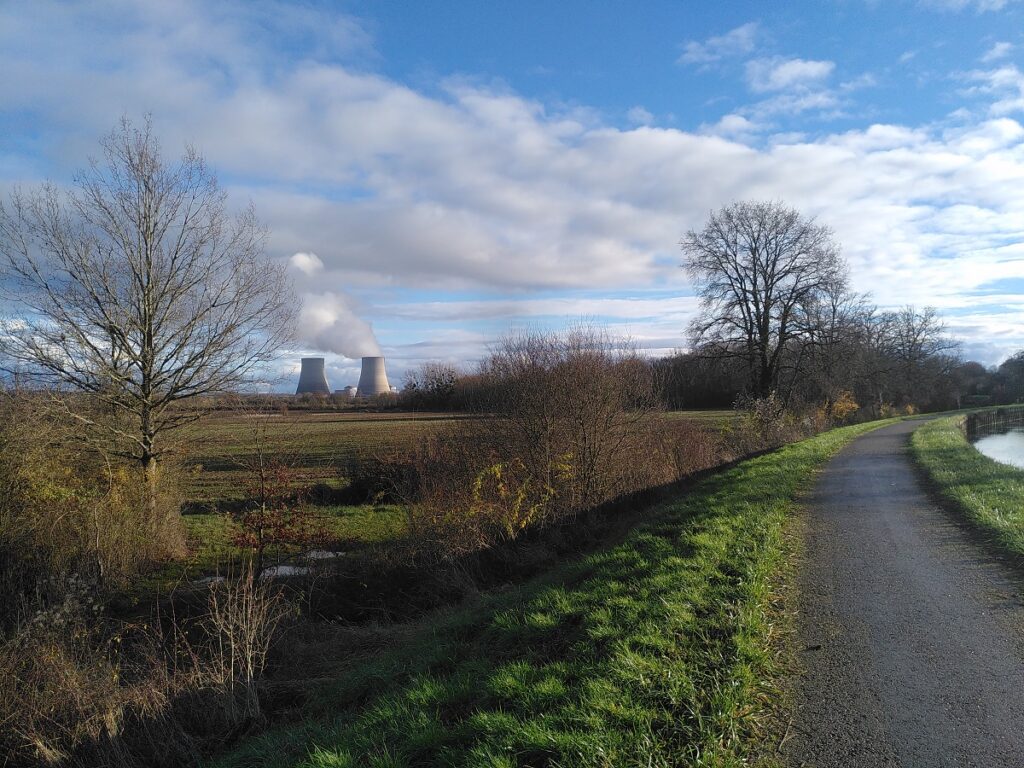 En préambule, je proclame que je suis profondément attaché à la Loire, j’en suis presque amoureux. Je recommande à tout le monde le voyage à vélo, de l’expédition à la sortie du dimanche. POURTANT, je ne connais rien d’aussi ennuyeux que ce trajet que je vous ai décris ! Les levées de la Loire permettent de rouler isolé des voitures mais elles sont assommantes à la longue. Une fois la nuit tombée (d’où l’erreur de pédaler en décembre), tout ou presque devient sombre. Seule la faune sauvage (j’ai croisé plus de chevreuils que de cyclistes) se révèle dans la lumière de mon phare. Sur ce tronçon, comme tout le long de la Loire, vous trouverez châteaux et vignobles. Mais les vignes sont presque invisibles à cette période de l’année. Les constructions les plus surprenantes furent finalement les cheminées des centrales nucléaires. Vous me trouvez blasé et vous avez raison. J’ai surtout appris une chose me concernant : pédaler c’est bien, mais sans rencontres, cela ne m’apporte rien. Le paysage n’a donc de sens que quand il est lié aux humains qui le peuplent (j’aurai dû écouter mes cours de Géographie).